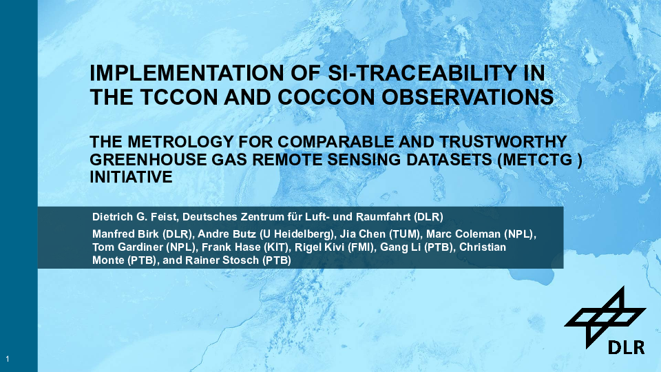 Project partner Dietrich Feist from DLR on behalf of the MetCTG consortium has presented the MetCTG initiative at the 1st CIPM STG-CENV Stakeholder meeting at BIPM.